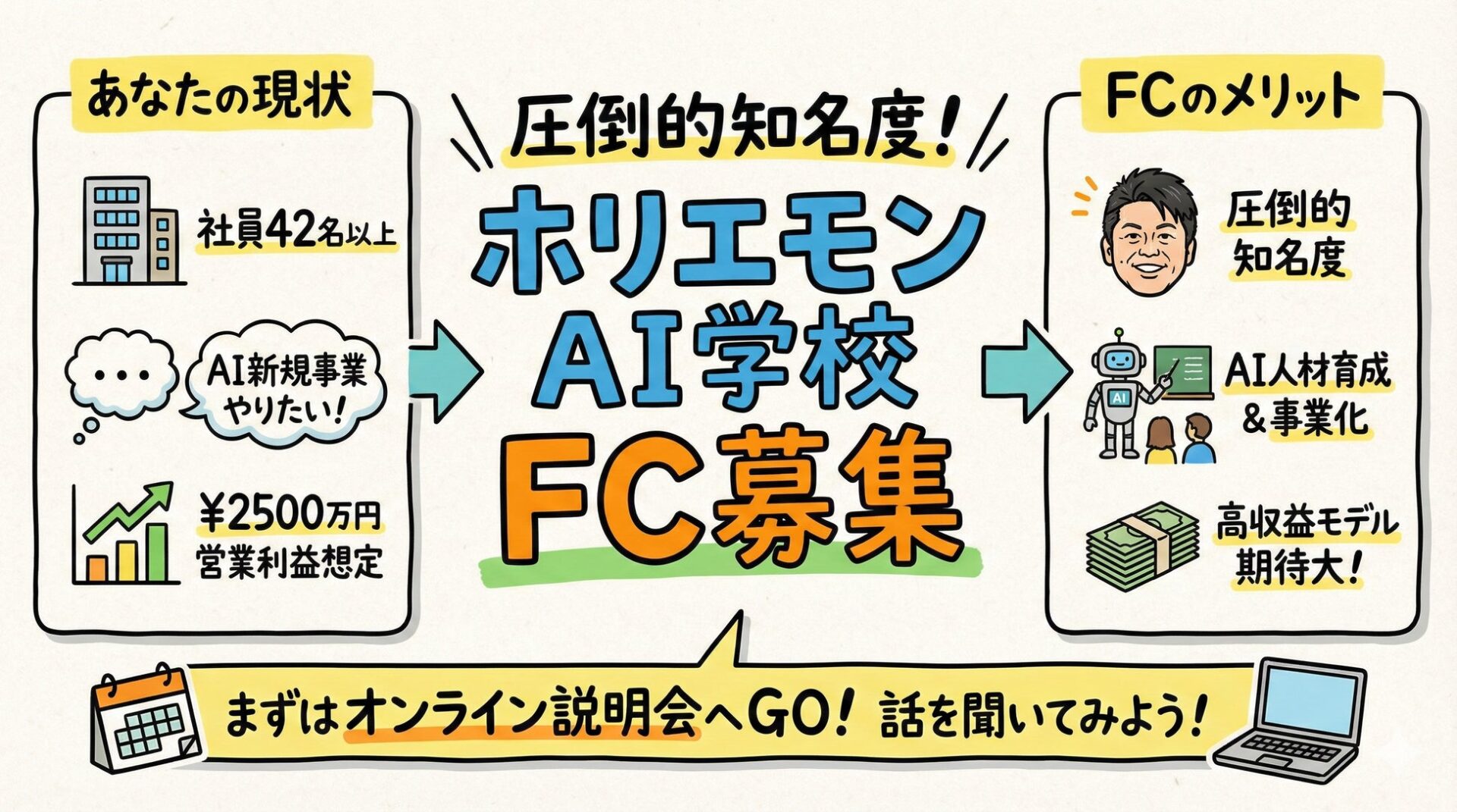 AI関連で新規事業をやりたい社員42名以上の経営者向け、ホリエモンAI学校フランチャイズ加盟企業を募集、説明会は2月12日(木)14時から