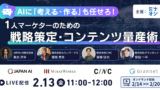 株式会社じげん(本社:東京都港区、代表取締役社長執行役員CEO:平尾丈、東証プライム:3679)が運営する、BtoBサービス比較メディア『ミナオシ』(https://3naoshi.com/)は、2026年2月13日(金)に無料のオンラインセミナー『AIに”考える・作る”も任せろ︕一人マーケターのための戦略策定・コンテンツ量産術』を開催します。