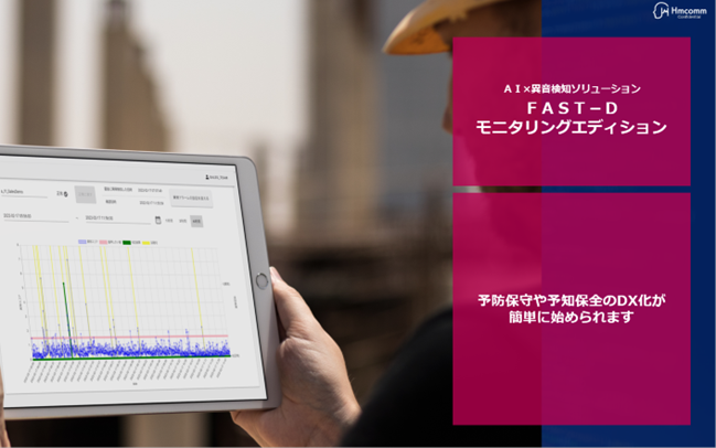 FAST-D(Flexible Anomaly Sound Training and Detection, https://fast-d.hmcom.co.jp/)とは、「AI異音検知」を利用することができるサブスクリプション型のプラットフォームです。
