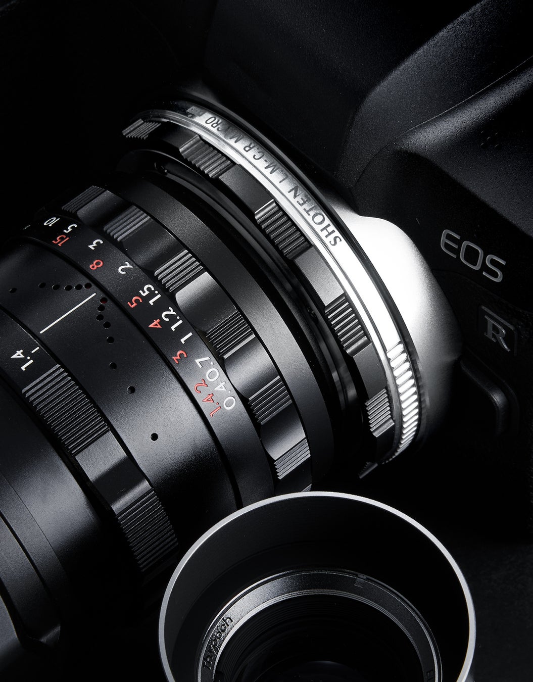 SHOTEN(ショウテン)LM-CR M Eは、ライカMマウントレンズをキヤノンRFマウントのミラーレスカメラで使用するためのマウント変換アダプターです。EXIF記録およびフォーカスガイドに対応する電子接点を搭載し、各種情報をカメラ側へ伝達します(AF非対応)。さらに繰り出し量4mmのヘリコイドにより、レンズの最短撮影距離を短縮。被写体に寄った撮影が可能になります。