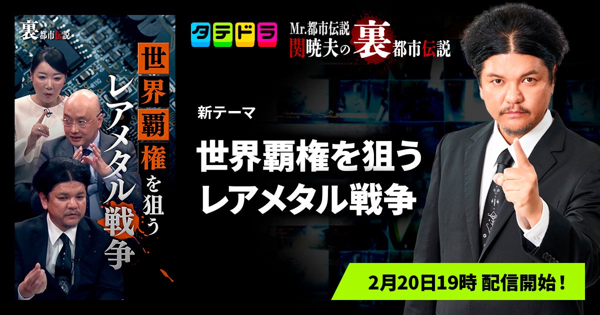 株式会社DONUTS(東京都渋谷区、代表取締役:西村啓成)が開発・運営する縦型ショートドラマアプリ「タテドラ」は、現在配信中のオリジナルバラエティ企画『Mr.都市伝説 関暁夫の裏都市伝説』について、新テーマ「世界覇権を狙うレアメタル戦争」(全16話)を2026年2月20日(金)19:00より配信開始いたします。