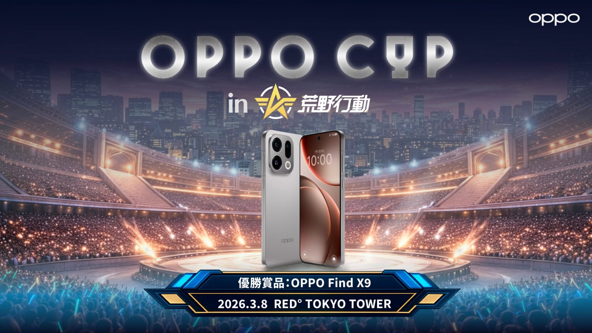 革新的なデザインとテクノロジーで業界をリードするスマートデバイスブランドOPPOは、日本市場参入後初となるeスポーツ大会「OPPO CUP in 荒野行動」を3月8日(日)、東京・RED° TOKYO TOWER(東京・港区)にて開催いたします。荒野行動のプロチーム「αD」メンバーもゲストとして参加し、実況解説やプレイヤーとして大会を盛り上げます。大会では、OPPOの最新ハイエンドモデル「OPPO Find X9」を使用。近年拡大を続けるeスポーツ市場で、OPPOの高性能スマートフォンによるゲーム体験価値を提案する取り組みとして開催いたします。