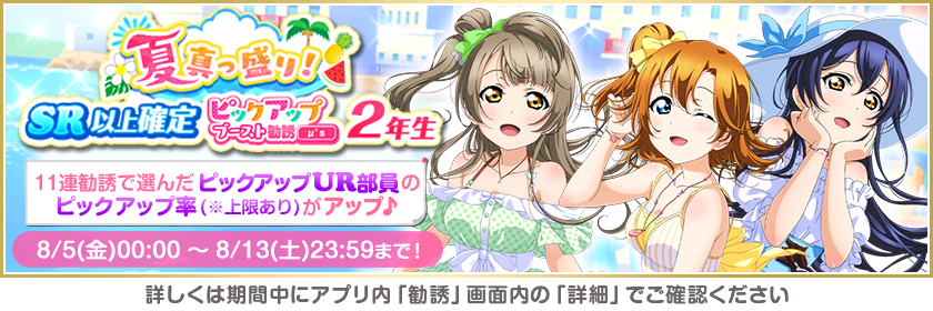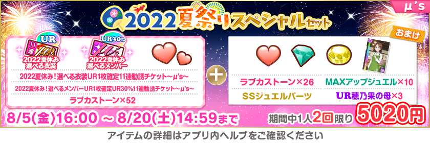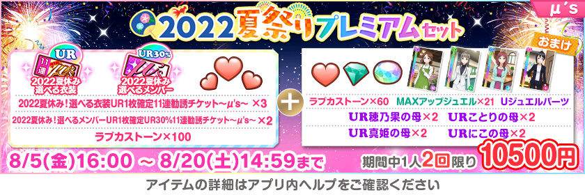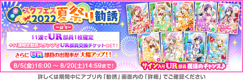 ・2022夏休み!選べるメンバーUR1枚確定UR30%11連勧誘チケット〜μ’s〜