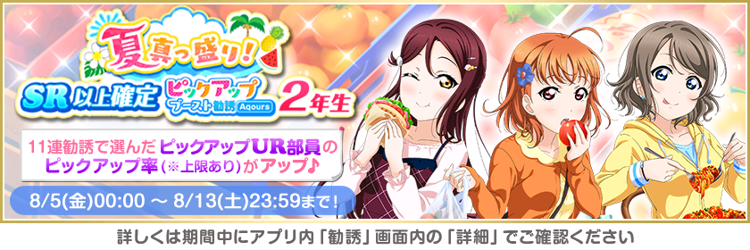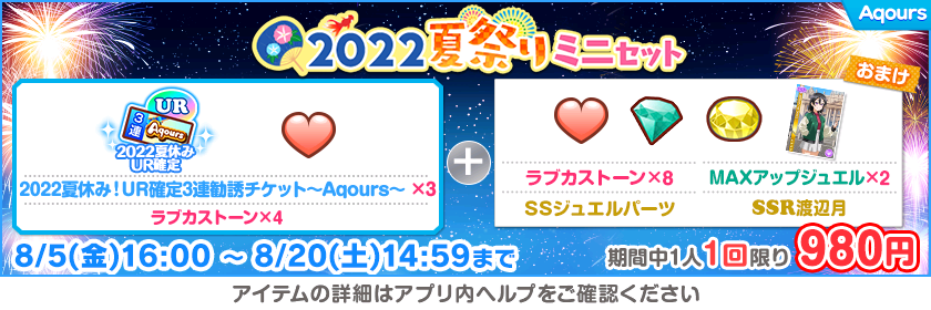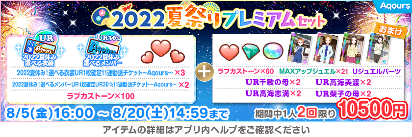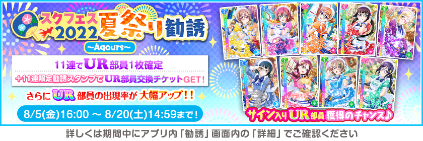 ・2022夏休み!選べるメンバーUR1枚確定UR30%11連勧誘チケット〜Aqours〜