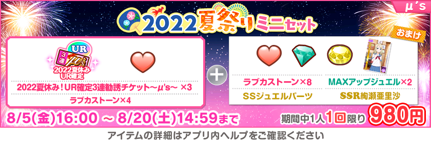 ・2022夏休み!UR確定3連勧誘チケット~μ’s~