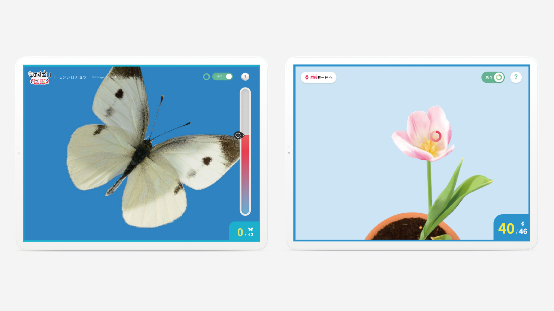 子供たちが楽しめるように、バッチを集めてコンプリートするゲーム要素を加えつつ、植物図鑑には探究心を育てるためのヒント機能も盛り込みました。