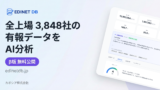 全上場企業3846社の財務データ・AI分析 | EDINET DB 金融庁EDINETの有報データを構造化。3846社の財務指標・財務健全性スコアを無料API/MCPで提供。 |