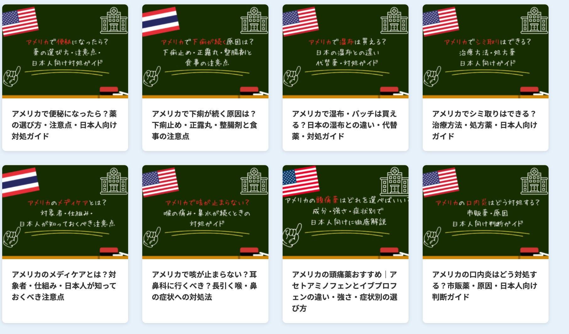 アメリカの医療や英語に不安を覚える日本人に向けて、主に以下の内容を中心に記事をまとめています。