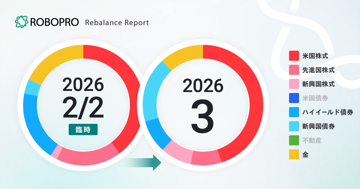 SBIグループで革新的な金融ソリューションを提供する株式会社FOLIOホールディングスの子会社である株式会社FOLIO(本社:東京都千代田区、代表取締役:四元 盛文)は、2026年3月2日、AI投資「ROBOPRO」において、原則、月一回実施する投資配分の変更を行いました。