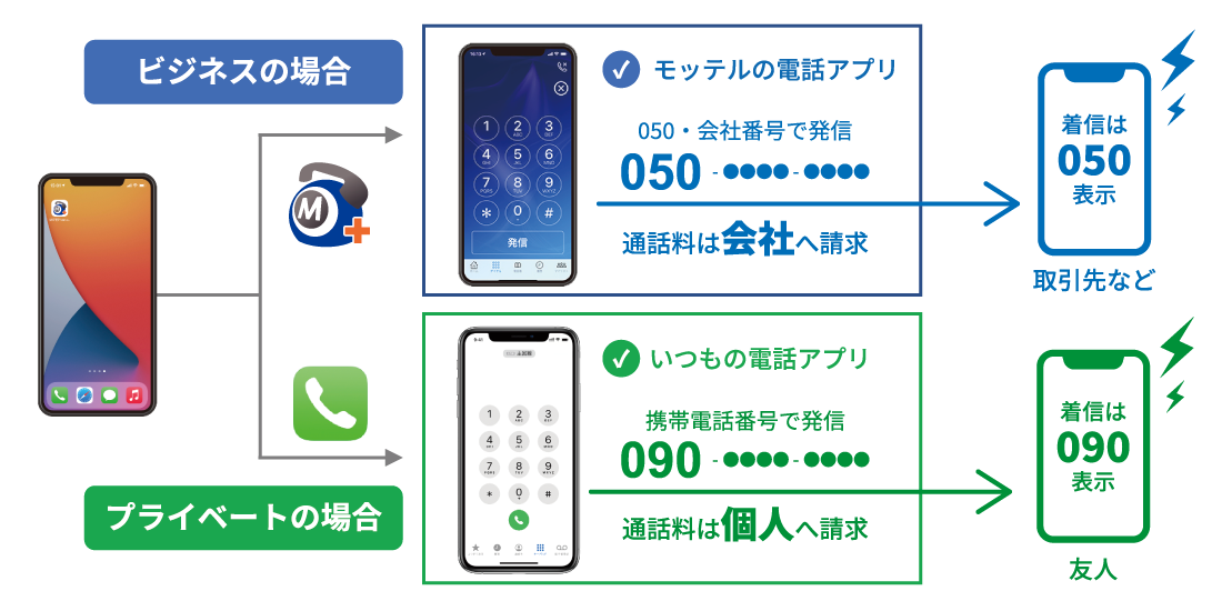 スマートフォンに専用アプリをインストールすることでビジネスフォンのように使えるクラウドIP電話です。