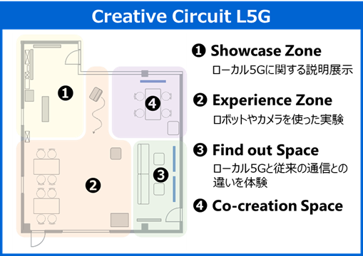 ラボ内は、ローカル5G体験と共創の場として、以下のようにエリア分けしています。