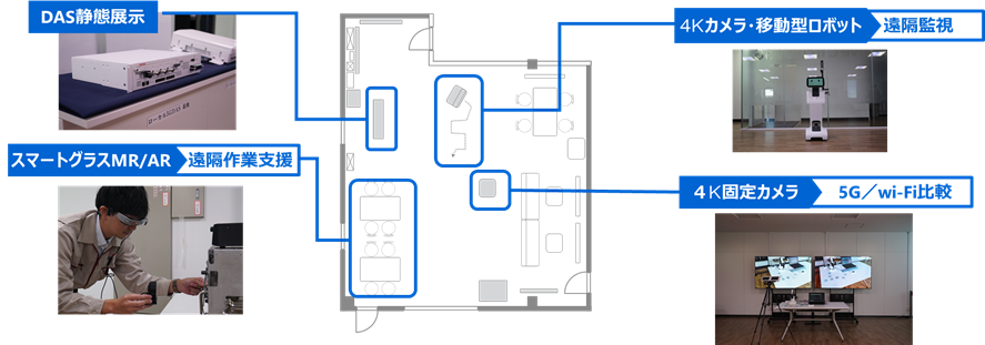 スマートグラス、高精細映像伝送、DAS※2、5GとWi-Fi違いなど体験ができます。