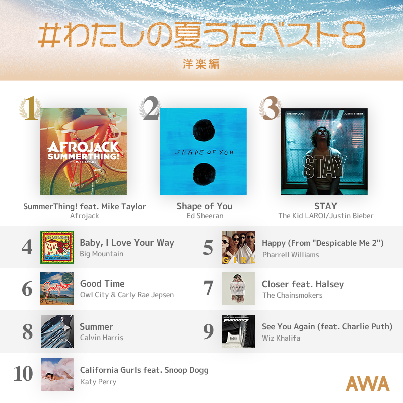 ■AWAユーザーが選ぶ!わたしの夏うたTOP10 ~洋楽編~