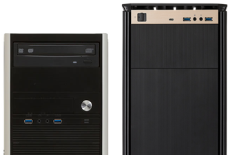 またスタンダードモデルでは、金色アルマイトパネルがアクセントの前面ヘアライン仕様デザインケースを採用。実際に使用しているユーザー環境を分析し、「“作業中に意図せず電源ボタンに手が触れてシャットダウンしてしまった“という誤動作を防ぐスライド式電源スイッチ」「眩しくなく作業の妨げにならないLEDランプ配置」「幅の広いUSBメモリなどを使用しても余裕のある前面端子配置」など、“あったらいいな”の装備が充実しています。