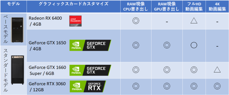写真だけでなく動画をメインに扱う方にも。最適な用途別のグラフィックスカードをご用意