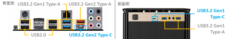データの高速転送を可能にする USB 3.2 Type-C 端子を前面・背面に搭載(スタンダードモデルのみ)