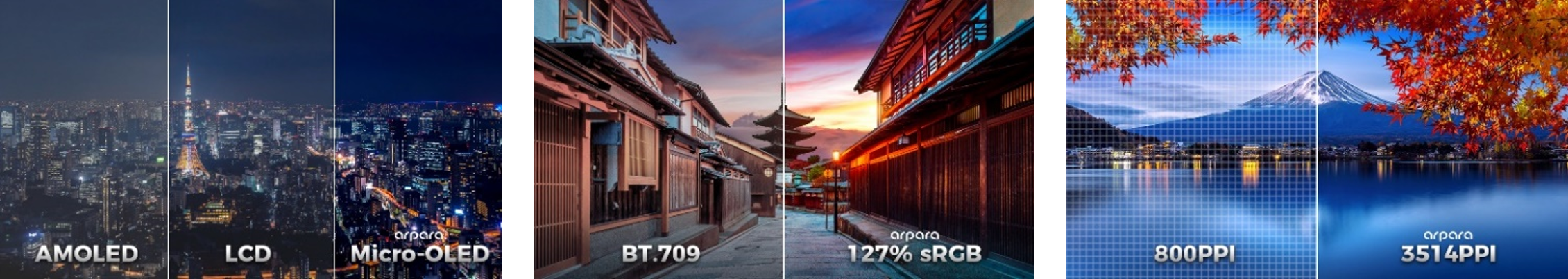同社の自社開発のarparaバーチャルリアリティ(VR)デバイスはシリコンベースのOLEDスクリーンとリエントラントな超短焦点近眼光学系に基づいており、高い画質と広い視野との非互換性という業界の問題を解決します。arparaは一般消費者だけでなく、「Metaverse」によって拡張された仮想シーンとデジタルアバター技術を使用している、医療、教育、アナログシミュレーション等の現場においても広く応用される。