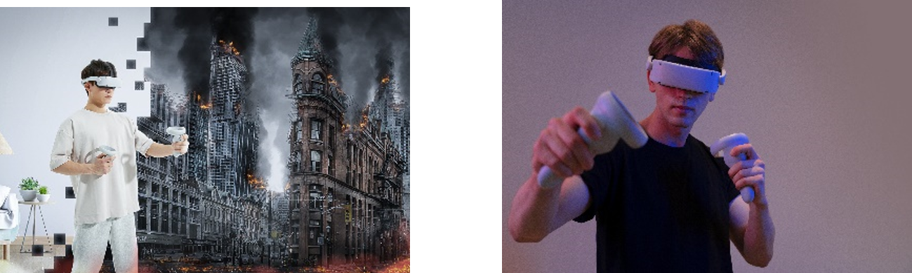 重さは最軽量クラスのわずか380gで、着用感を最大限に高めながらストレスを最小限に抑えます。ストラップデザインは、独自の15度傾斜でVRの重量を分散し、顔や鼻筋への圧迫を軽減します。柔らかく通気性の良いマスクは、顔の形にフィットし、プレイヤーの仮想世界への没入感を大きく高めるだけでなく、長時間プレイでも息苦しさを感じさせません。また、瞳孔距離と視度調整対応で、自分の視度に合わせて自分に合った度数を調整することで、眼鏡をかけていない状態でもクリアな視界を確保し、快適なプレイを楽しむことができます。