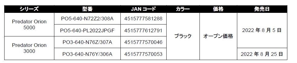 Predator Orion 5000 「PO5-640-N72Z2/308A」はAmazonにて、Predator Orion 5000 「PO5-640-PL2022JPGF」はZOA、ベイシア電器、Acer公式オンラインストアにて、またPredator Orion 3000「PO3-640-N76Z/307A」「PO3-640-N76Y/306A」はAmazonおよびAcer公式オンラインストアにて販売します※。