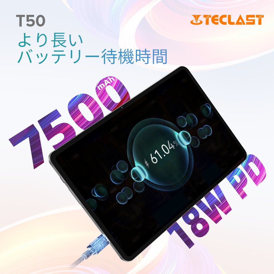 「T50」には、7500mAhのバッテリーが搭載されており、1日中バッテリーを長持ちさせることができます。 18W USB-PD急速充電をサポートしているため、タブレットをすぐに満電に戻すことができます。