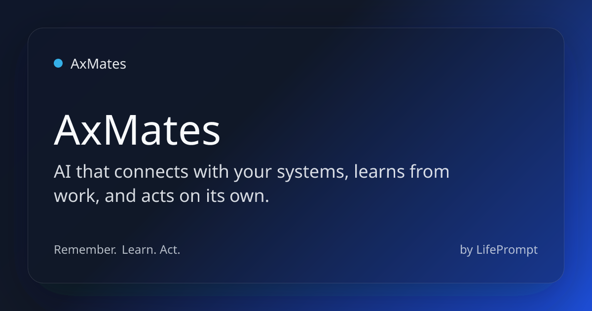 株式会社LifePrompt(本社: 東京都新宿区、代表取締役: 遠藤聡志)は、AIが社内システムと連携し、チームの一員のように業務を完了まで進めるAIプラットフォーム「AxMates(エーエックスメイツ)」の提供を2026年4月1日より開始いたします。