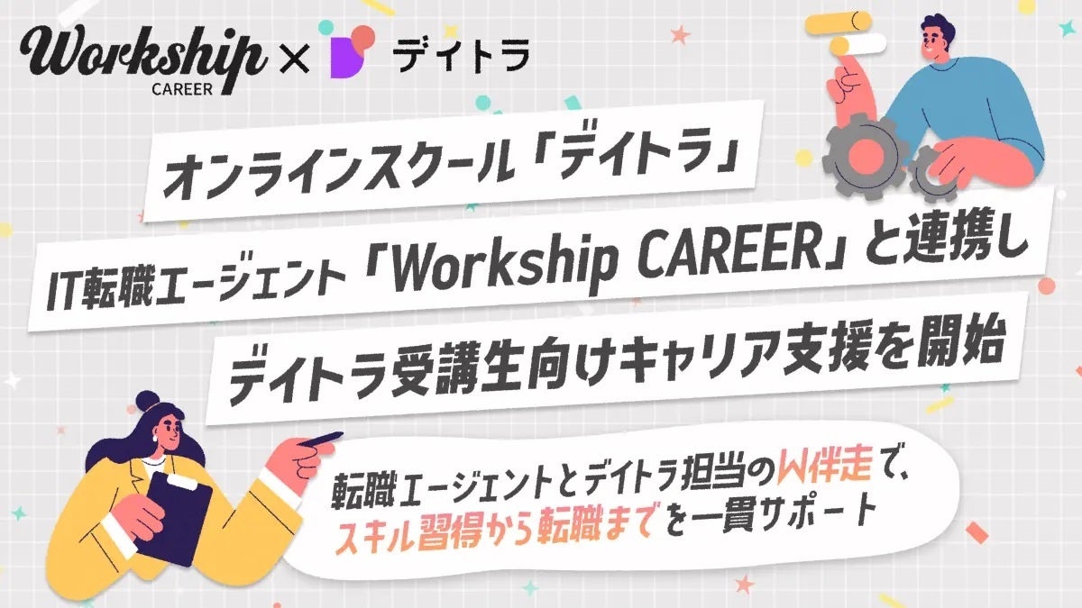 Workship CAREERは、IT・DX人材のスキルと希望に合ったキャリア実現を支援する転職エージェントです。デイトラは実践的なカリキュラムと受講生の質の高さで業界でも高い評価を得るオンラインスクールであり、今回の連携により、スキル習得からキャリア形成まで一貫して支援できる体制が整いました。学んだことを活かして新しいキャリアに挑戦したい方の自己実現を、両社で伴走してまいります。