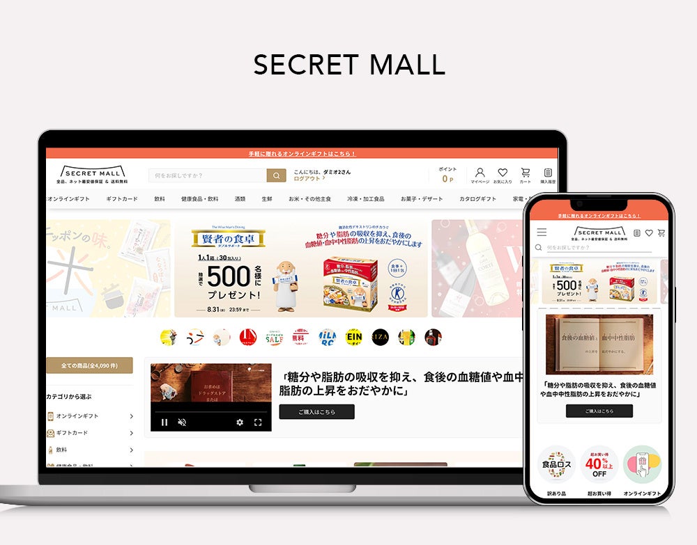 SECRET MALLは、会員企業や提携団体の会員組織から招待された方限定で利用することができる、福利厚生ショッピングサイトで、飲料、酒、食品(お米、肉、魚、野菜、菓子含む各種加工食品)、ギフト用商材などを多数とりそろえています。商品や価格を会員以外には公開せず、また招待者の身分を確認の上で認証する完全会員制のECサイトとし、その前提でメーカー、サプライヤ各社様にもご協力いただくことで、他のECサイトでは実現が困難な価格で販売しています。
