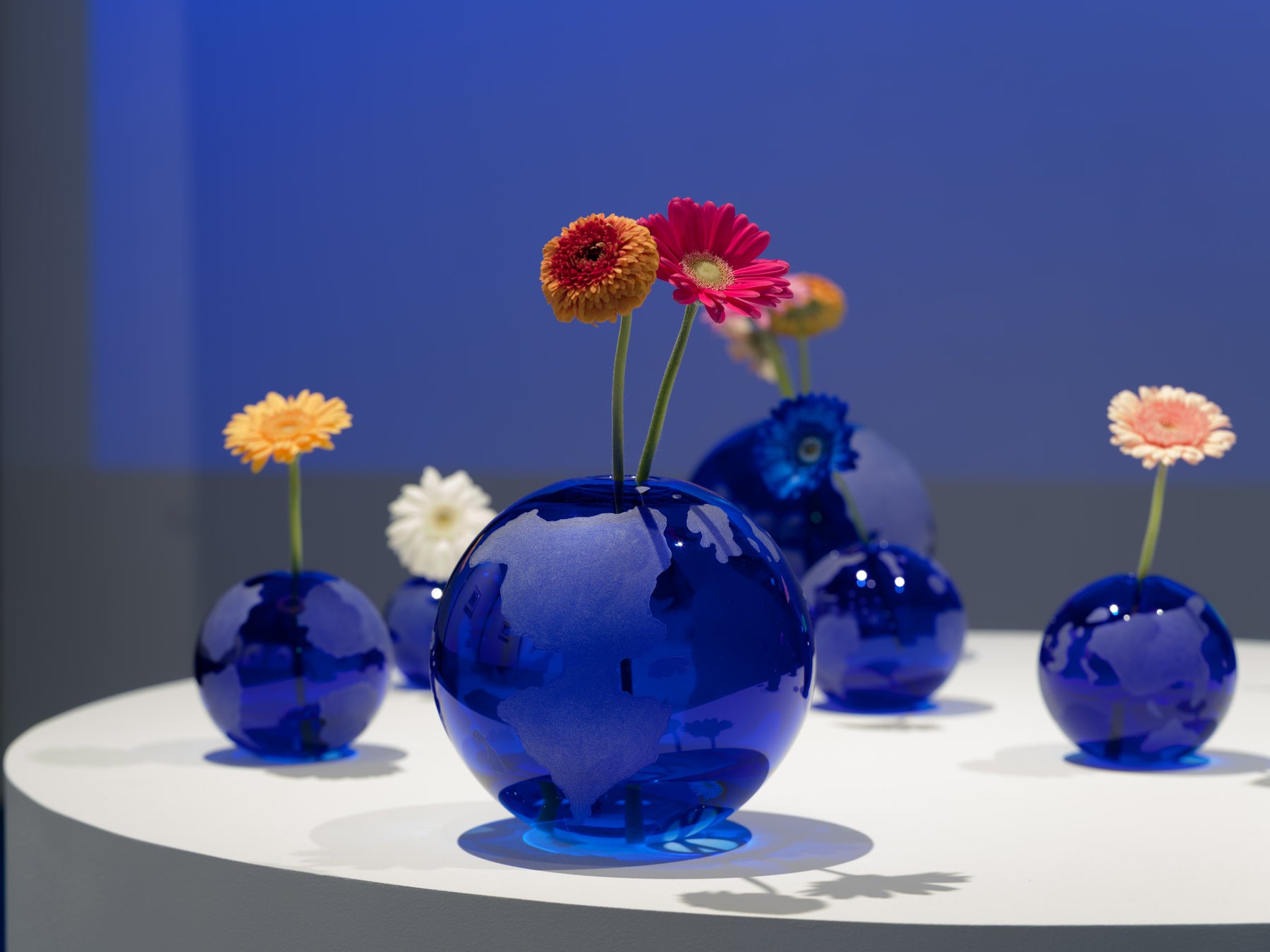 この展示のタイトルになっている作品「あいまいな地球に花束を」は、地球儀の形をした花瓶です。でも、ただの地球儀ではありません。いろんな国の人が書いた、その人の頭の中にある「あいまいな世界地図」をそのまま形にした地球儀です。小さな国がすっぽり消えている地球もあれば、大きな大陸がなくなっていたりします。世界の形は一つではなく、人の数だけ存在するものなのかもしれません。そんなあいまいな地球を祝福したいと思いました。