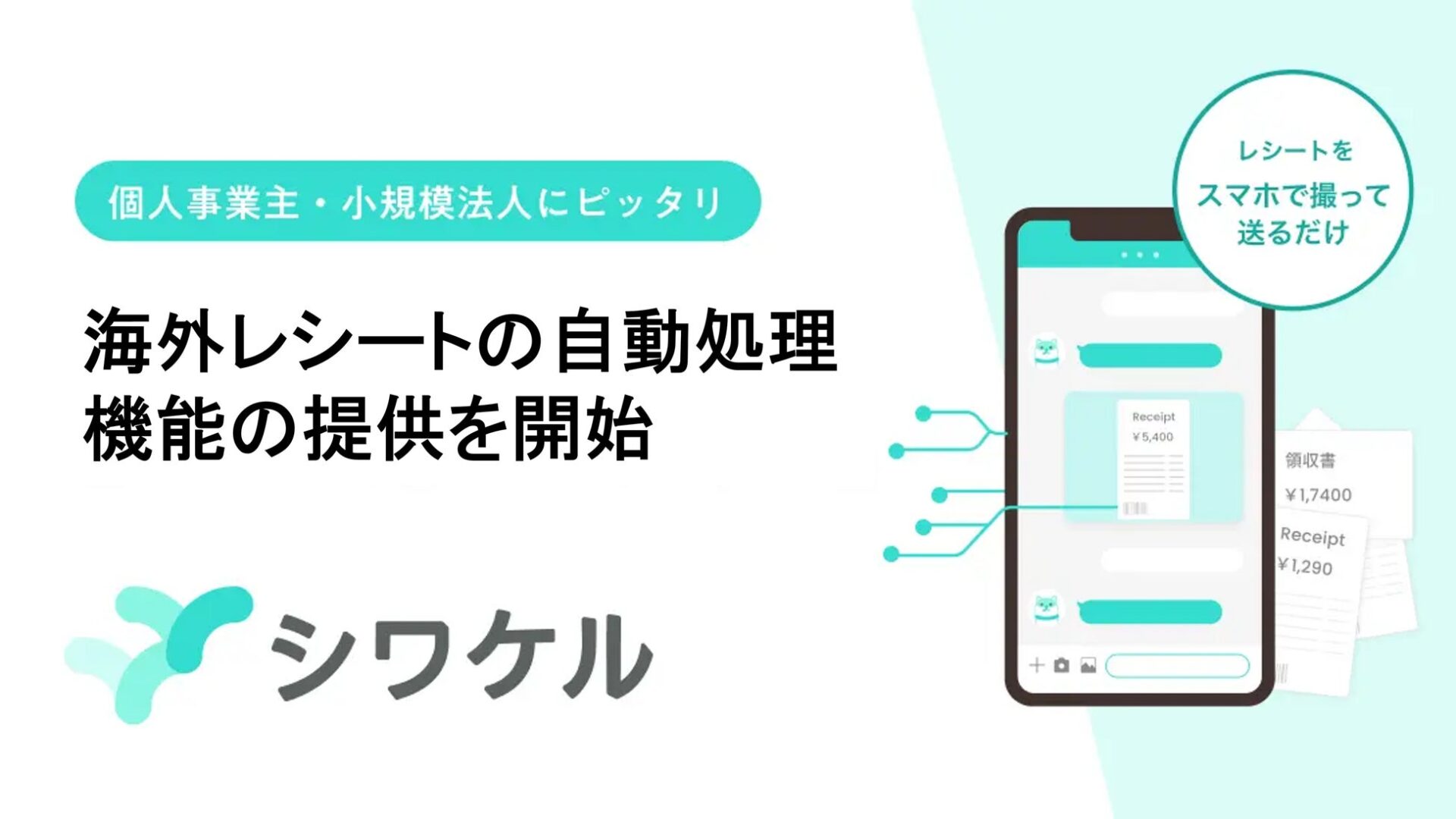 これまでシワケルでは日本円建てのレシートを対象に自動仕訳を行ってきましたが、今回のアップデートにより、海外で発行されたレシートについても、撮影して LINE に送るだけで、日本語以外の言語で書かれていても AI が内容を精査し、自動で為替換算を行って、仕訳・会計ソフトへの登録までを完結できるようになりました。