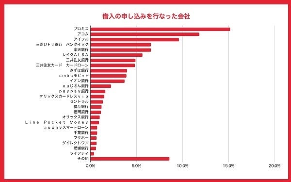 借入が行われた会社も、一番目はプロミス(15.4%)で、二番目はアコム(11.9%)という結果になりました。