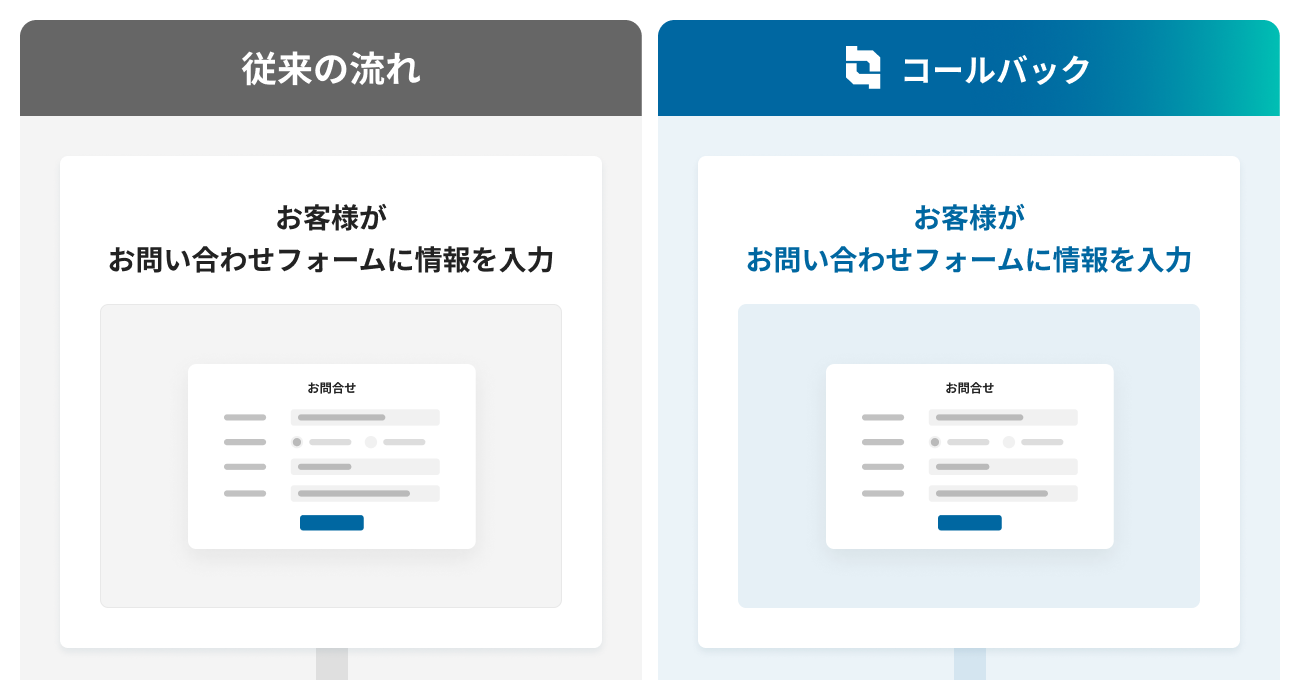 従来の「お問い合わせを頂いたお客様の情報(電話番号)を閲覧し、Webサイトから既に離れているお客様に対して社用のスマートフォンやIP電話から発信をすることで、ヒアリングや商談の打診をするという体験」から、