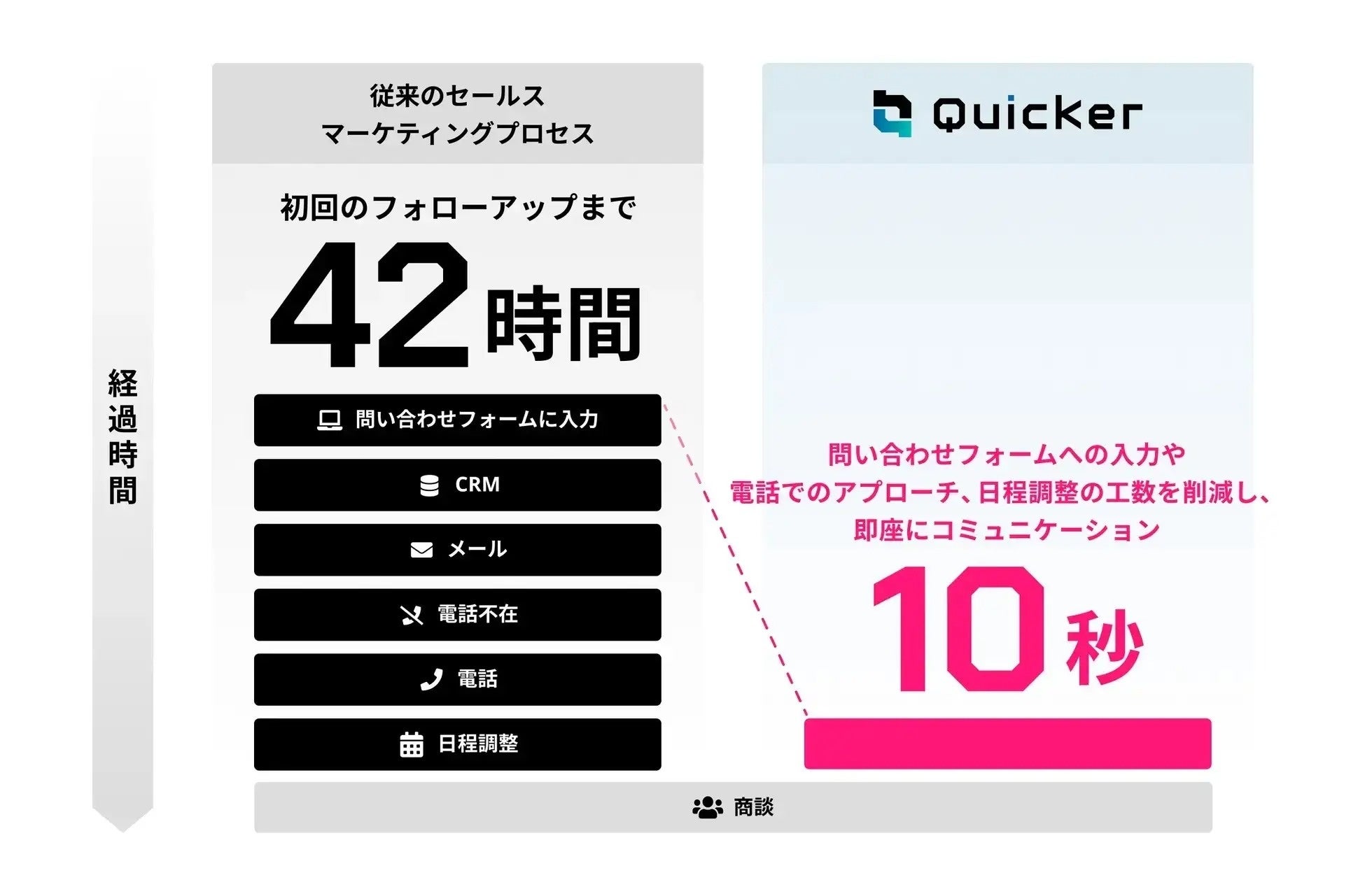 Quickerはたった「ワンクリック」で、B2B企業のWebサイトに訪問したお客様が、営業担当者と即座に繋がれる、これまでに無いスムーズな「お問い合わせ」の体験を提供します。