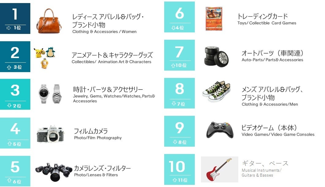 女性向けのブランド品(Clothing& Accessories)が1位と不動の人気を見せましたが、2位以下の順位に変動がみられる結果となりました。