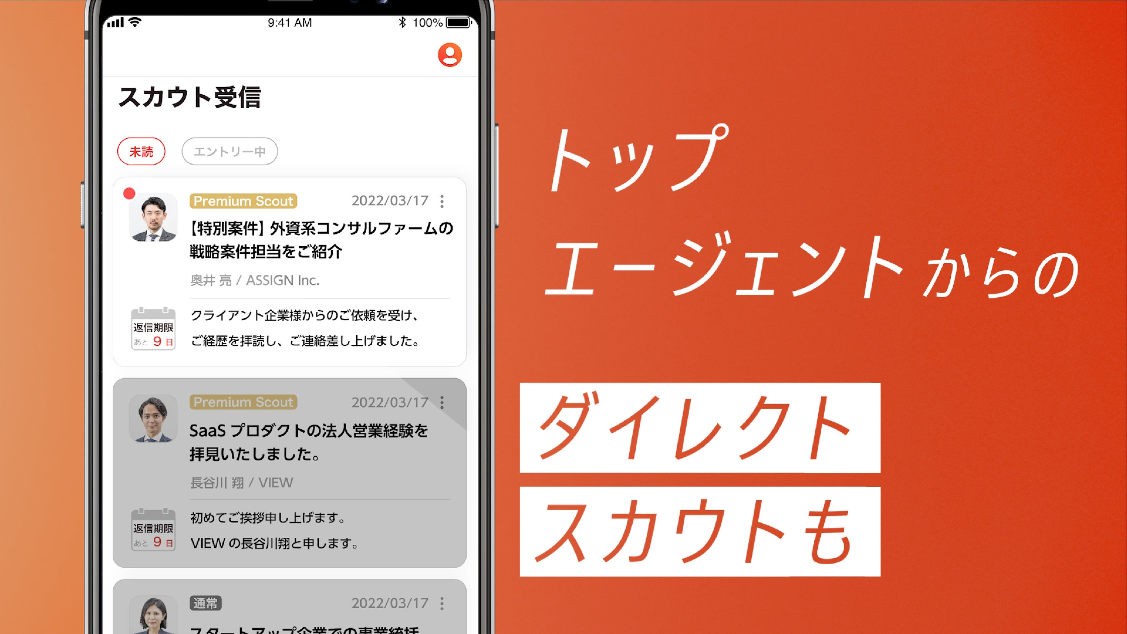 また、若手層のキャリア形成に適した企業からのダイレクトスカウトも受け取ることができます。
