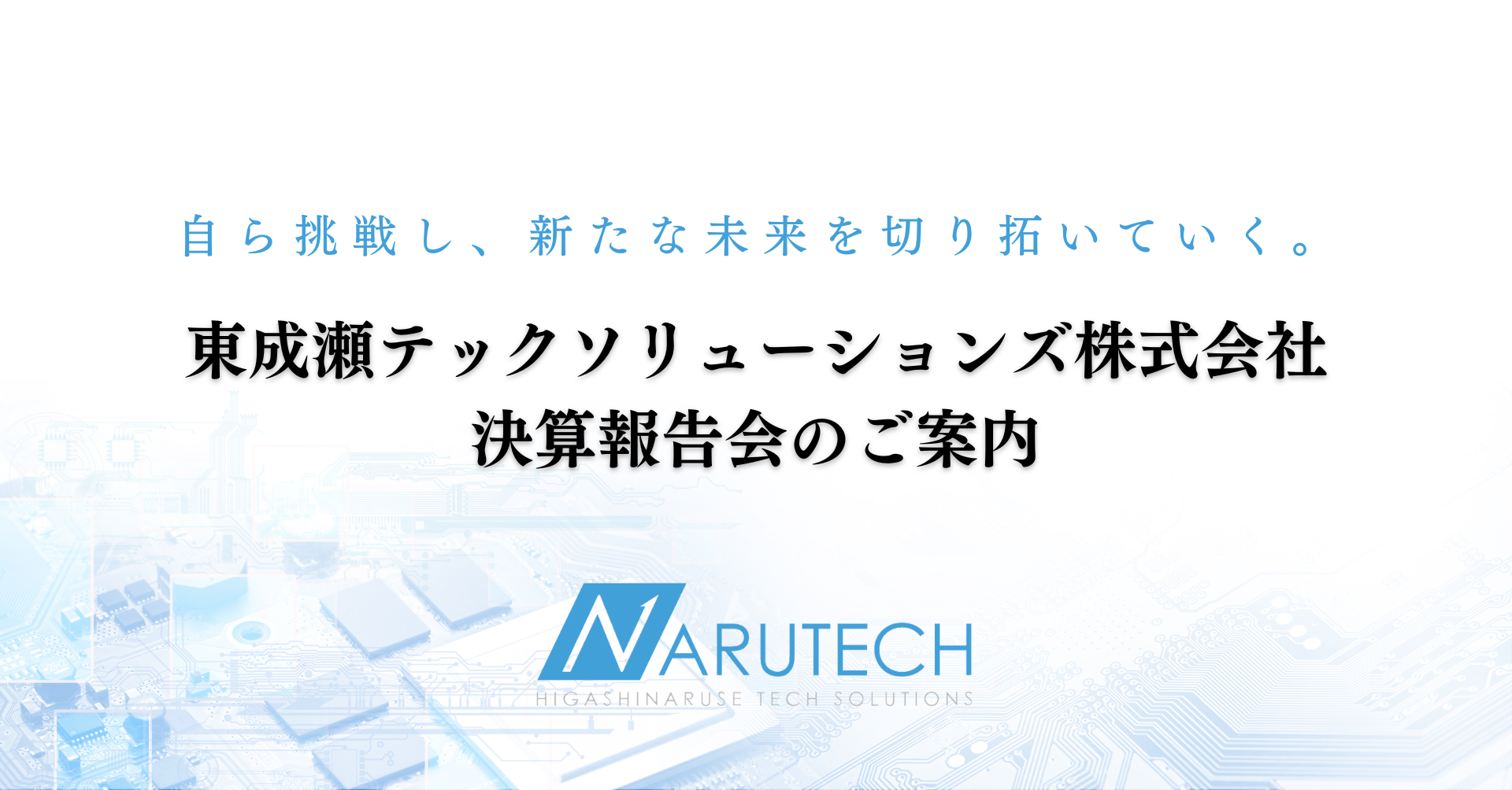 東成瀬テックソリューションズ株式会社(本社:秋田県雄勝郡東成瀬村、代表取締役社長 近藤純光、通称「なるテック」)は、2022年9月期決算報告会を開催いたします。詳細につきまして、下記のとおりお知らせいたします。