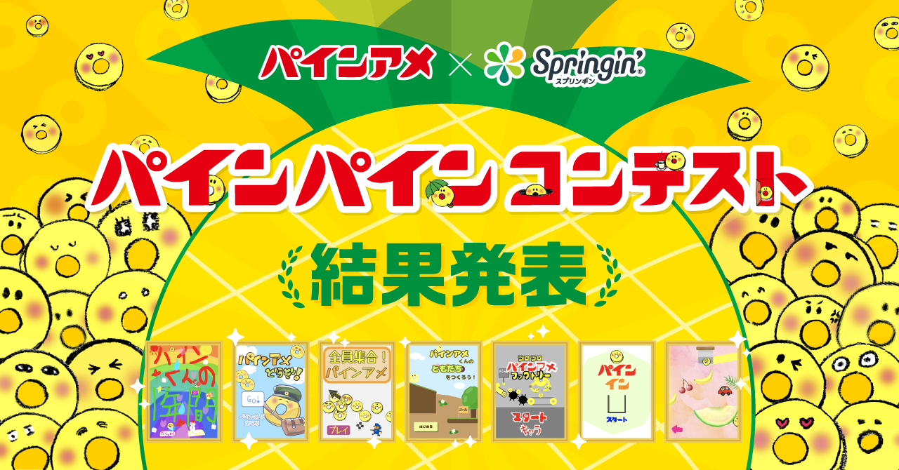 2022年6月8日(水)~7月10日(日)までの期間にて、昭和26年より幅広い世代に愛され続け、甘酸っぱくてジューシーな味わいのキャンディ「パインアメ」でお馴染みのパイン株式会社(本社:大阪府大阪市、代表取締役社長 上田真弘)とともに、スプリンギンを活用して、パインアメ公式SNSにて登場するキャラクター「パインアメくん」をテーマにした「パインパインコンテスト」を開催いたしました。