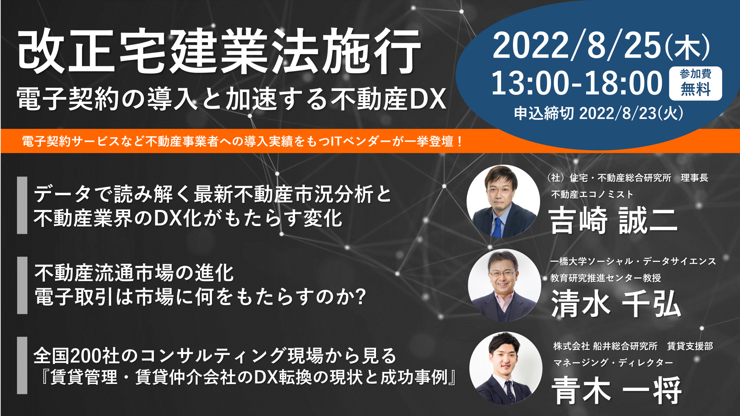8月25日(木)、産経新聞社主催のオンラインセミナー「改正宅建業法施行 電子契約の導入と加速する不動産DX」が開催され、現在、不動産関連事業をはじめとした参加者を募集中です。