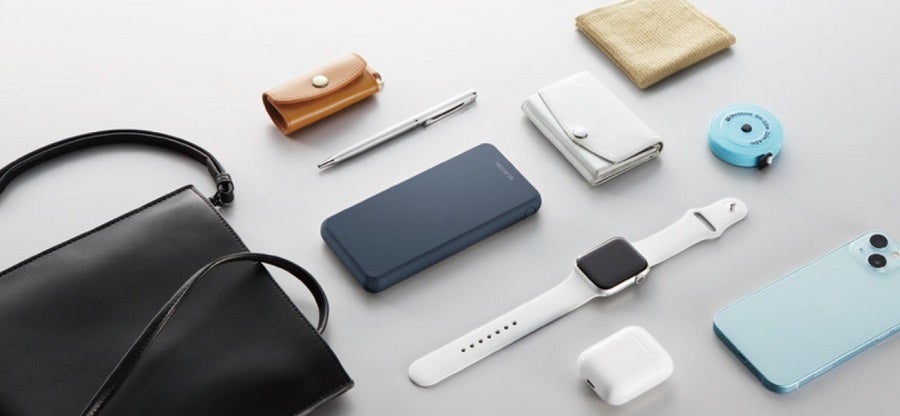 - “10000mAh”の大容量、重ね持ちしやすいフラットデザイン