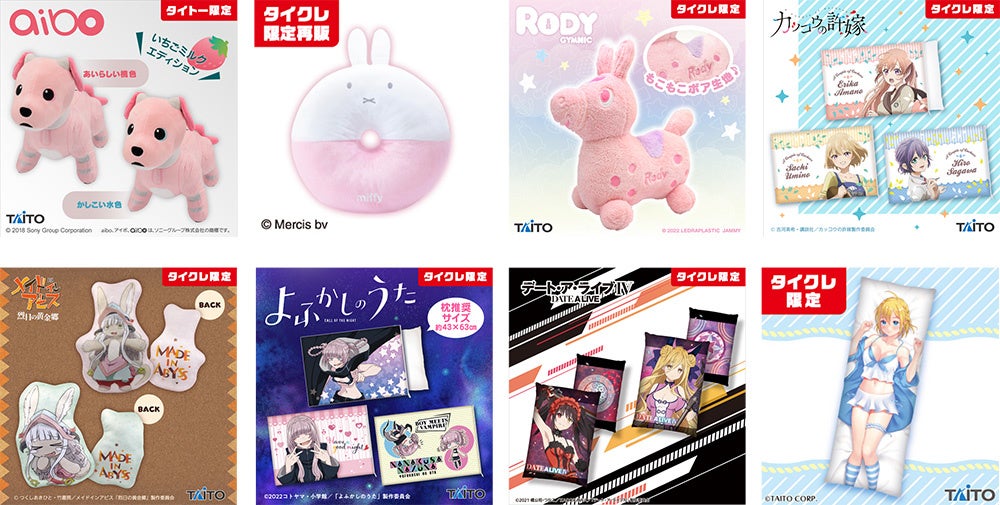 「タイトーオンラインクレーン(タイクレ)」は、いつでもどこからでもPCやスマートフォン、タブレットから本物のクレーンゲームを遠隔でプレイすることができるサービスで、獲得景品は週1回無料でご自宅に配送いたします。景品はぬいぐるみやフィギュアなどアミューズメント施設と変わらぬ品揃えの上、タイクレ限定景品も毎月多数登場。一定回数以上プレイいただいても景品を獲得できない時はスタッフが景品を移動し獲得をお手伝いする「アシストサービス」を実装しており、お客様よりご好評をいただいております。Webブラウザ版をはじめ、iOSアプリ版、Androidアプリ版、Yahoo!ゲーム版、Fire TV版にてお楽しみいただけます。