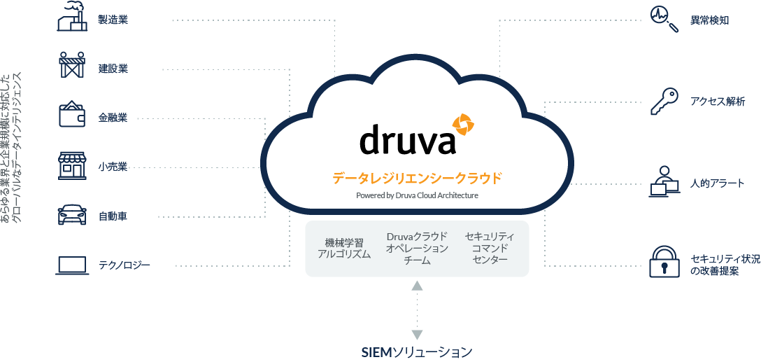業界唯一のSaaSデータレジリエンシープラットフォームであるDruvaは、これまでにない底深さと幅広さのあるデータインテリジェンスを提供します。Druvaデータレジリエンシークラウドは毎日、あらゆる業種や企業規模の何千もの企業から得たテレメトリを分析し、ローカルとグローバルに関する傾向を識別します。このデータインテリジェンスが、現在お客様が利用できるセキュリティ状況とデータリスクに関する洞察を後押ししています。Druvaの包括的な機能を使用することで、お客様は今日のデータリスクをよりよく理解し、攻撃への備えを怠らないようにすることができます。