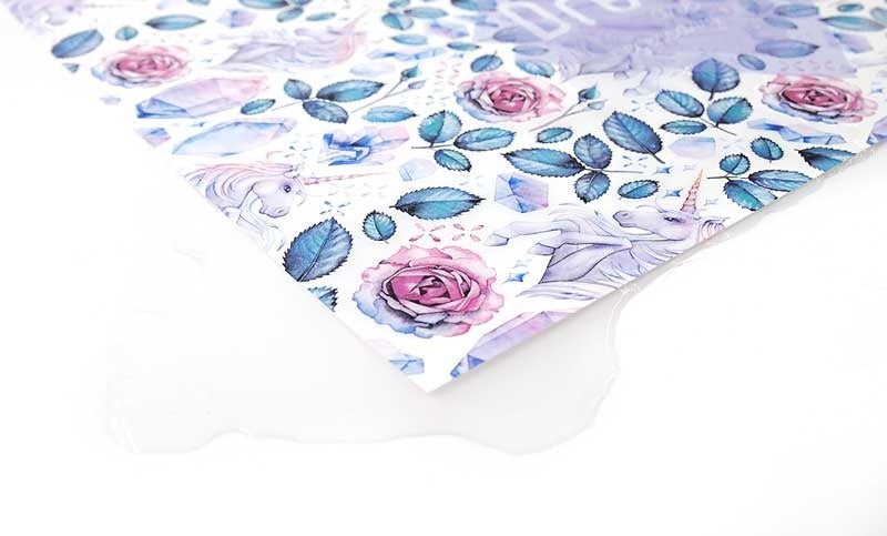 オリジナルお風呂ポスターは耐水性に優れた素材(100%PET基材の合成紙)を使用。高級感あるマット調で肌触りも良いのが特徴。厚みは、雑誌の表紙やしっかりとしたチラシぐらいの厚さで紙と違い耐水性がございます。