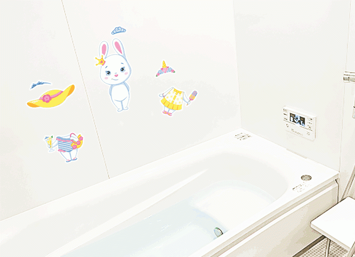 ▲お子様と着せ替え遊びも!バスルームを楽しく!貼って楽しむオリジナルお風呂ポスター