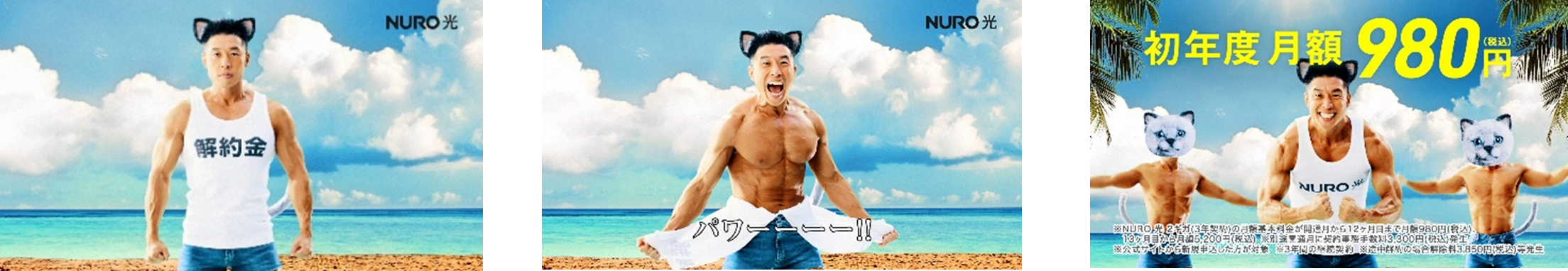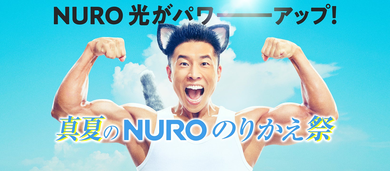 『真夏のNUROのりかえ祭』を一緒に盛り上げてくれる特別キャラクターには、お笑い芸人のなかやまきんに君を迎え、WEB-CM3本(「どっちニャんだい?」篇、「筋肉コンピューター」篇、「解約金パワー突破」篇)を公開します。「NURO 光」の公式キャラクター=ニャーロに扮したなかやまきんに君が自身の人気ネタを盛り込みながら、「NURO 光」に「かえるのかい、かえニャいのかい、どっちニャんだい?」とわかりやすく投げかけていく内容になっています。撮影に向けて猫の研究をしてきたというなかやまきんに君がニャーロになり切って演じる様子に注目ください。