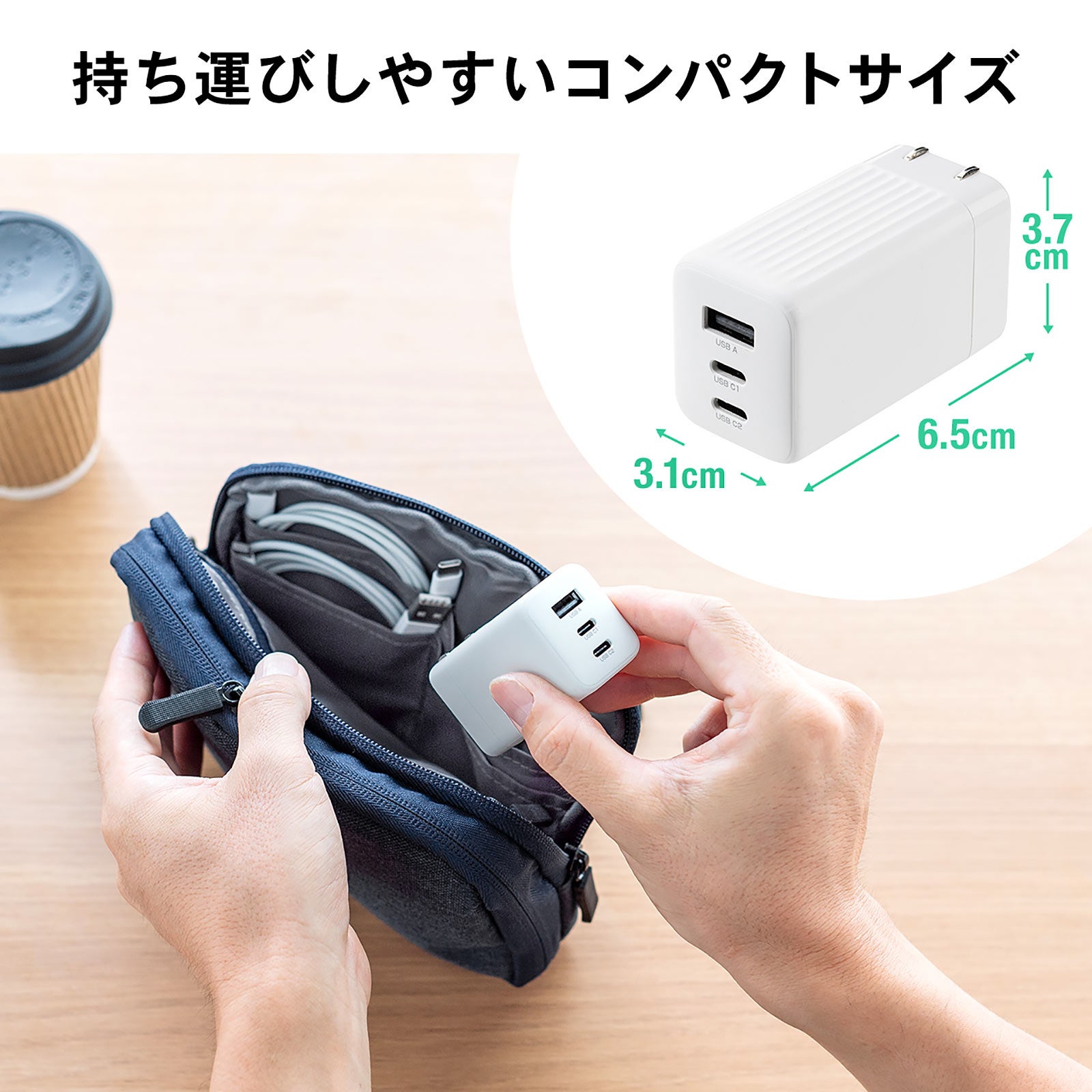USB-C充電器 PD 充電器 65W USB-A & USB-C 3ポート GaN窒化ガリウム 折りたたみ式プラグ 急速充電 ノートパソコン ホワイト