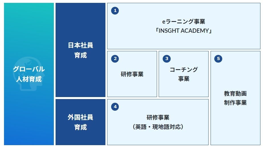 日本社員向けでメインとなるビジネスが ❶eラーニング事業の「INSIGHT ACADEMY」です。