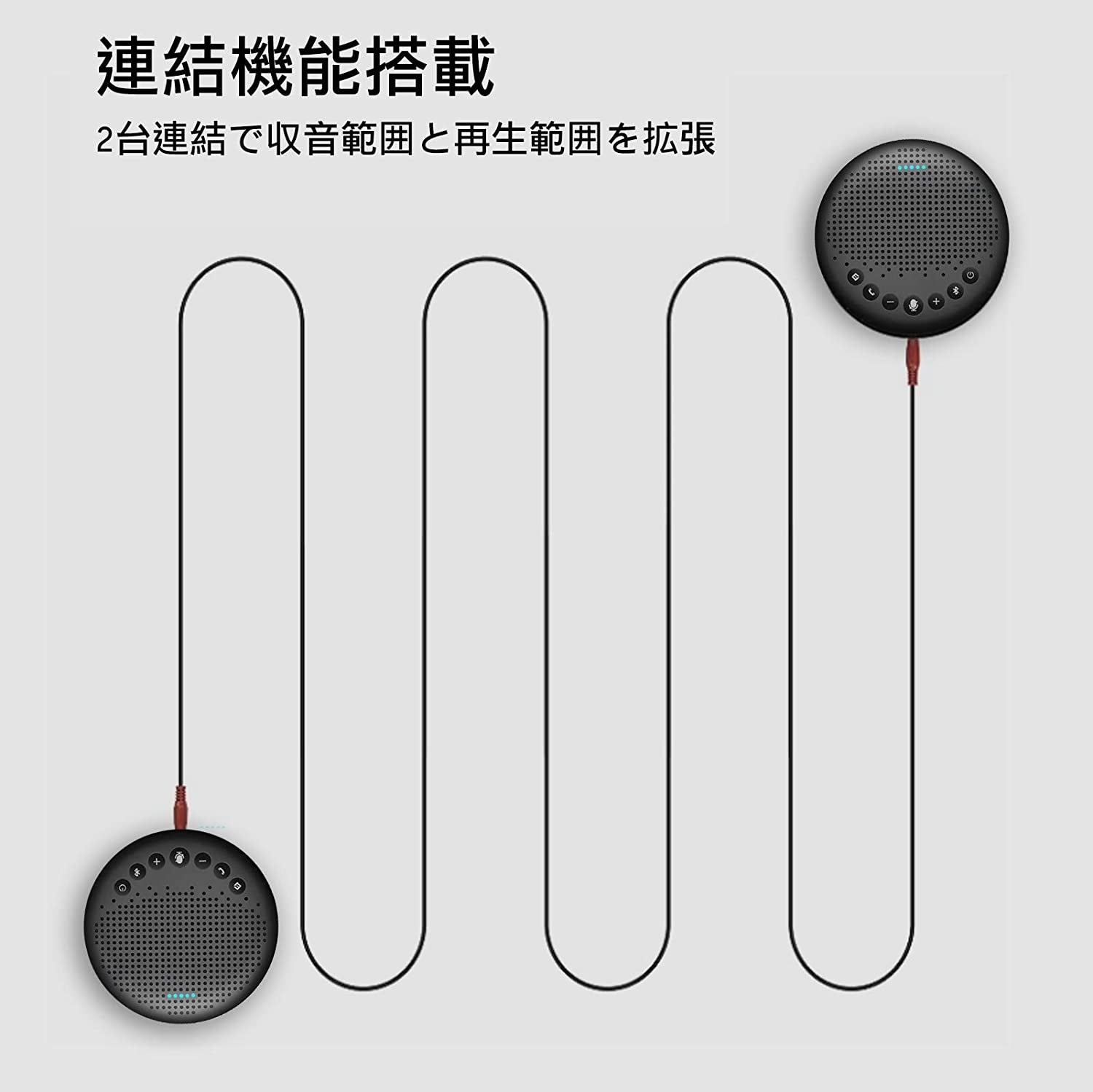 1台で5~8人に対応できますが、オプションの連結ケーブルを使い、もう1台Lunaスピーカーフォンとの連結ができ、収音範囲および再生範囲を拡張します。連結したLunaスピーカーフォンは高音質を提供し、最大89dBで、メッセージがしっかりと伝われ、快適な会話が実現できます。また、8~12人程度の中大会議にも適用しています。※連結ケーブルは付属されません、ご注意ください。