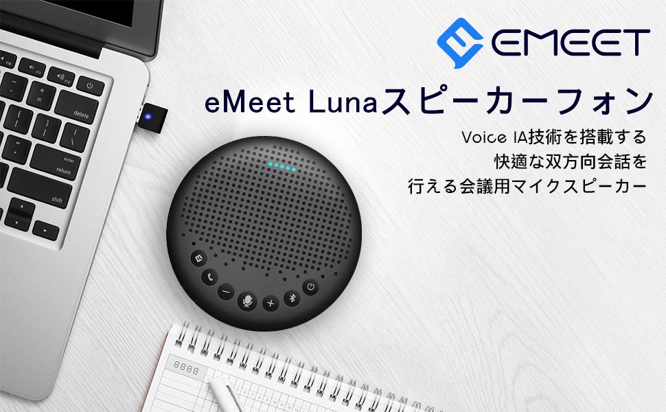 3つの高性能のマイクが内蔵され、360°全方位をカバーできるEMEET Lunaスピーカーフォンは、参加者の音声を逃さずに集音できます。また、オートゲインコントロール機能も付きのため、発言者の声を自動的に検知し、ある程度に音量を増幅し、発言内容がより明確的に伝えます。