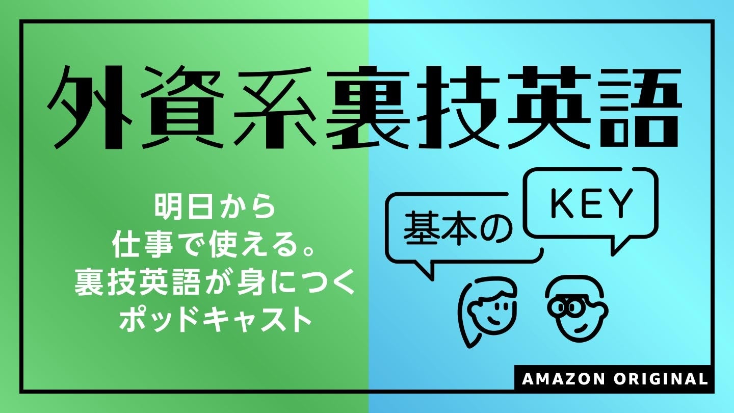 Amazon Musicは、ポッドキャスト番組『外資系裏技英語-基本のKEY』を8月11日(木)よりAmazonオリジナルとして配信します。同ポッドキャスト番組は、Amazon Musicに加えて、Apple, Spotify, Googleを含めた幅広いポッドキャスト・ストリーミング・サービスでお楽しみいただけます。