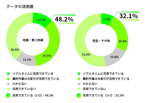 - 地銀・第二地銀74.1%、信金・その他76.9%がリアルタイムにデータを活用できていない