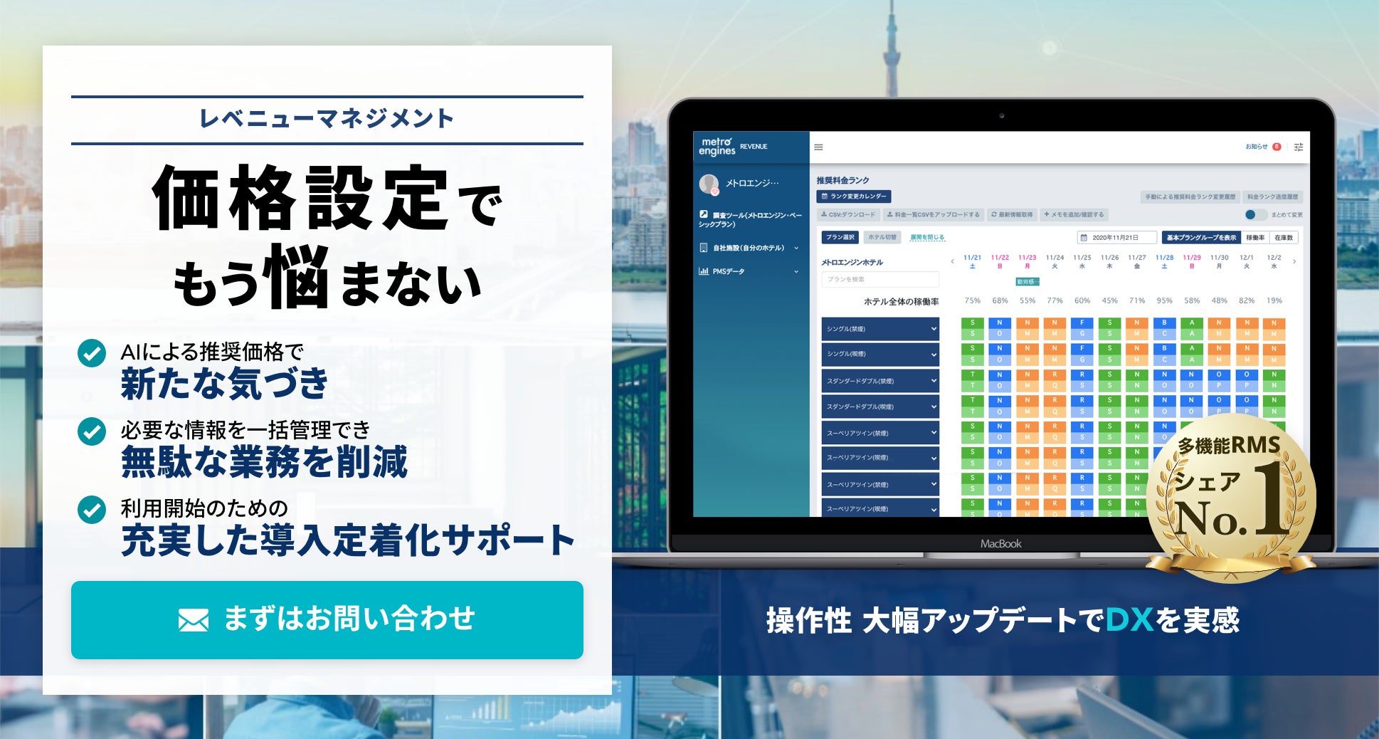宿泊施設向けレベニューマネジメントツール『メトロエンジン』を提供し、DX化や集客支援を行うメトロエンジン株式会社(本社:東京都港区、代表取締役CEO:田中良介、以下メトロエンジン)は、8月25日(木)と30日(火)に、「AIの力で業務効率化を目指す!『レベニューマネジメントツール』活用セミナー」を開催いたします。